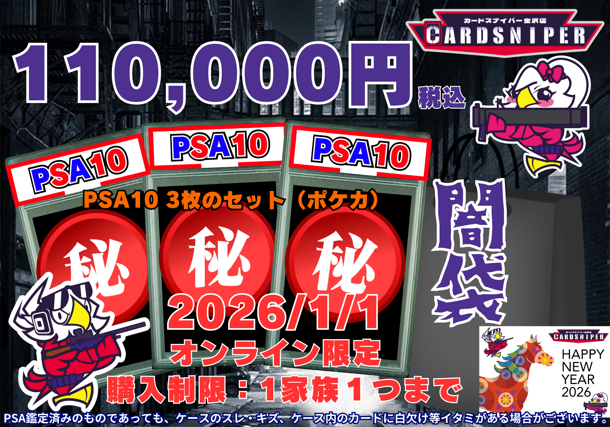 【2026年 HAPPY NEW YEAR 闇袋 】 110,000円 PSA10 3枚のセット(ポケカ)