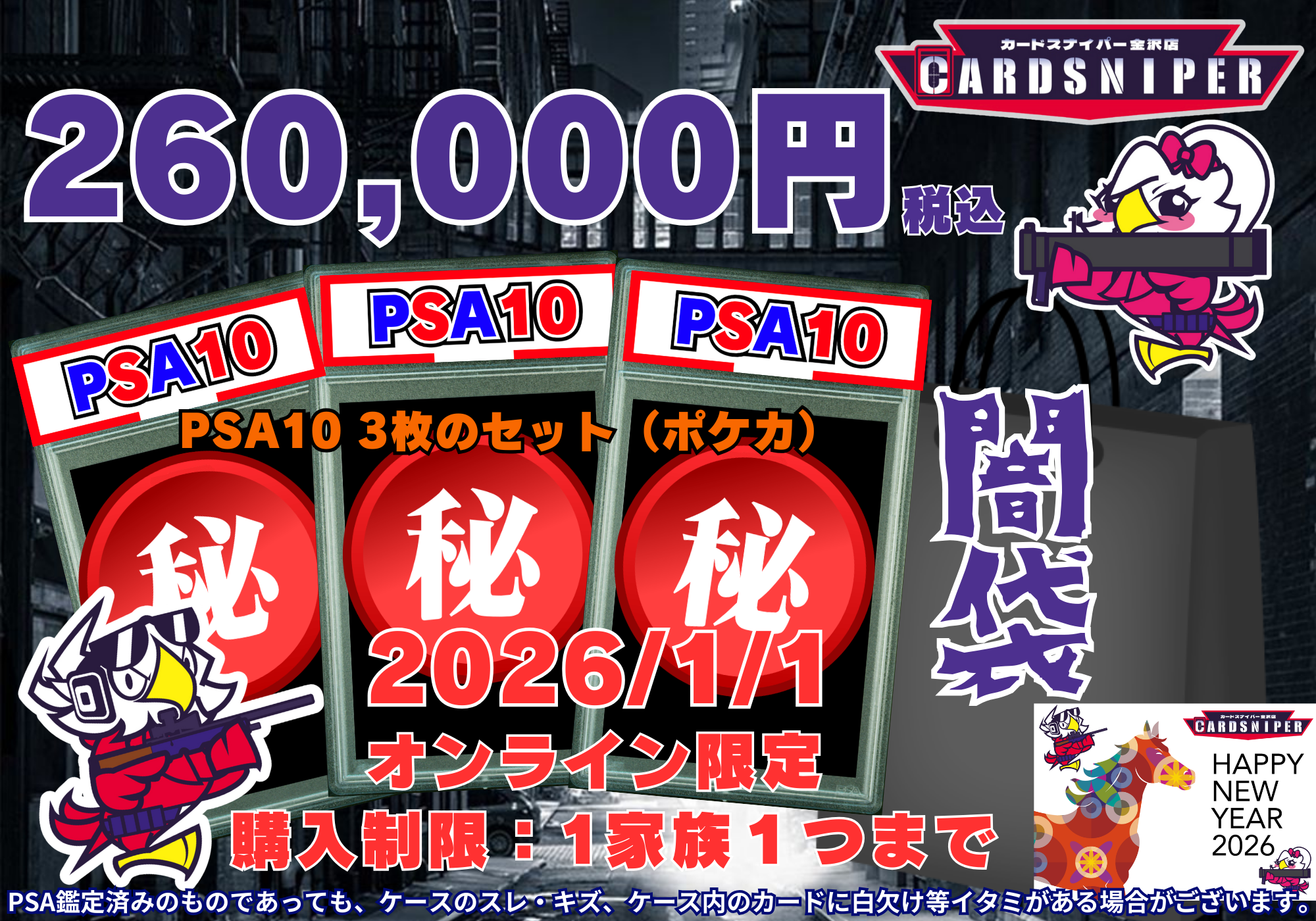 【2026年 HAPPY NEW YEAR  闇袋 】  260,000円 PSA10 3枚のセット(ポケカ)